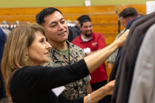 Together, 150 volunteers actively participated in every aspect of the 2022 Power Up for Success event to help Marines and Sailors navigate their transition out of military service and into the civilian workforce. Programs included a panel of Veterans who shared stories of their own successful transitions and experiences on the path to employment post-military service. One of Working Wardrobes’ very own career coaches led a workshop to guide Marines and Sailors in translating their military skills to a civilian resume and identifying potential careers. Through an onsite job fair, the event provided Marines and Sailors with direct connections to national industry employers. Participating Marines and Sailors received professional wardrobing services and headshots, and left with a Success Suit to wear at upcoming interviews.